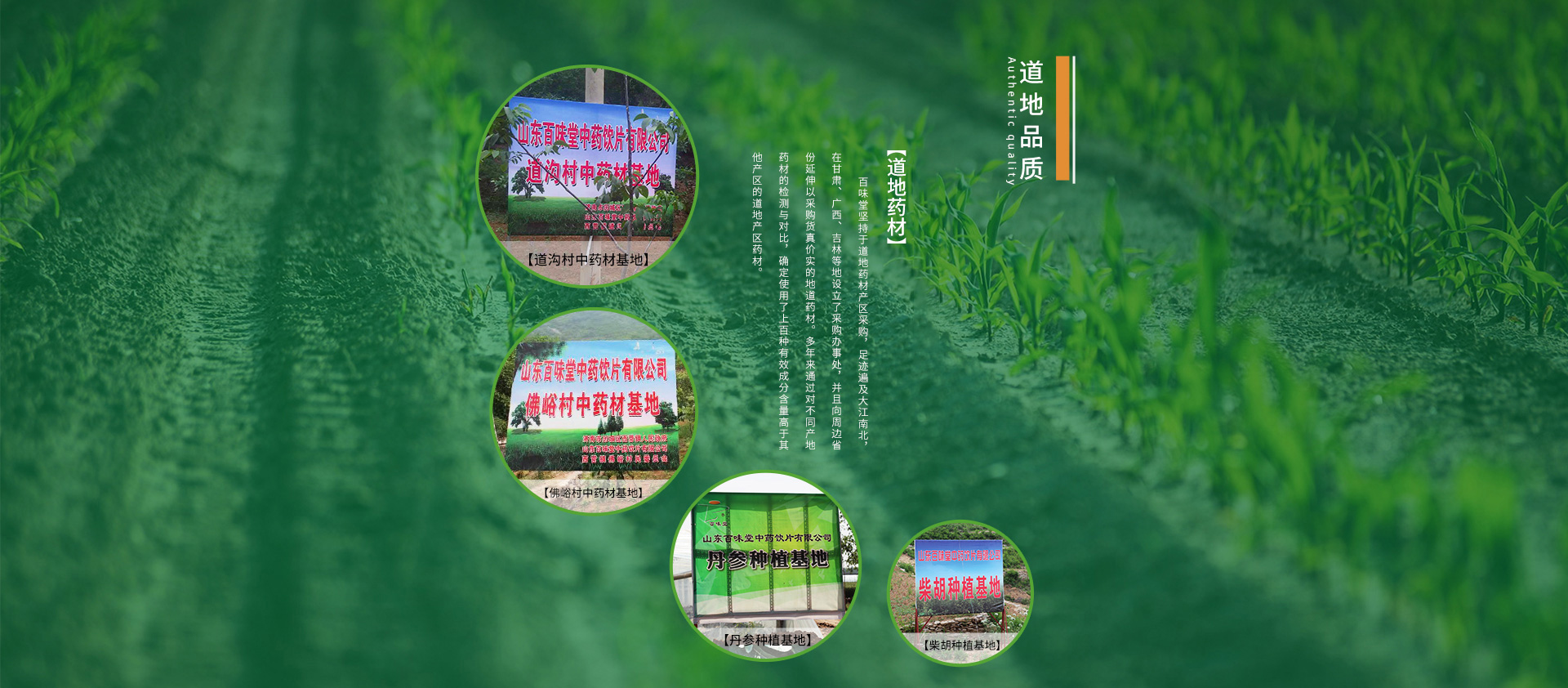 山東百味堂中藥飲片有限公司成立于2003年,是一家集中藥材種植、加工、中藥飲片生產(chǎn)、研發(fā)、銷售于一體的新型中藥生產(chǎn)企業(yè),是百年中藥老字號“同盛公”的傳承人。公司北臨千里黃河,南望秀美華山,風(fēng)景優(yōu)美、水土宜人。公司廠區(qū)建筑面積兩萬平米,擁有一般飲片、小包裝飲片、直接口服飲片、發(fā)酵、發(fā)芽、毒性中藥飲片和藥食同源生產(chǎn)七條生產(chǎn)線。公司致力于中藥材的精耕細(xì)作與中藥飲片的廣泛開發(fā),已先后建立了多個藥材種植基地和藥材原產(chǎn)區(qū)供應(yīng)基地。